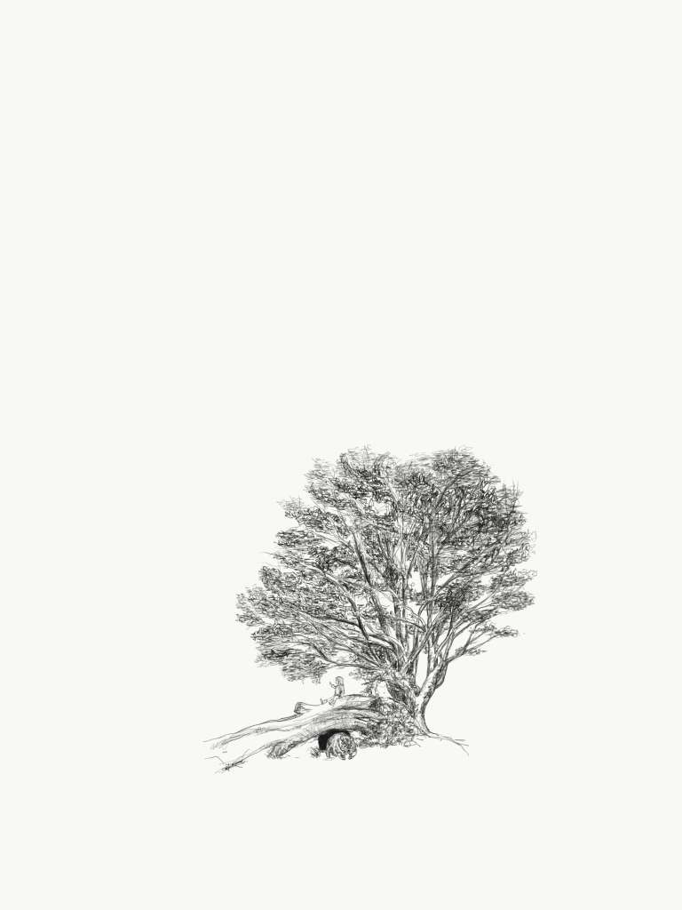 This drawing was commissioned for a client, as a feature image for their property and boutique farming business Branch and Burrow. This tree is on their property, and they wanted a wombat in the image. I included their son in their image to make it more personal.