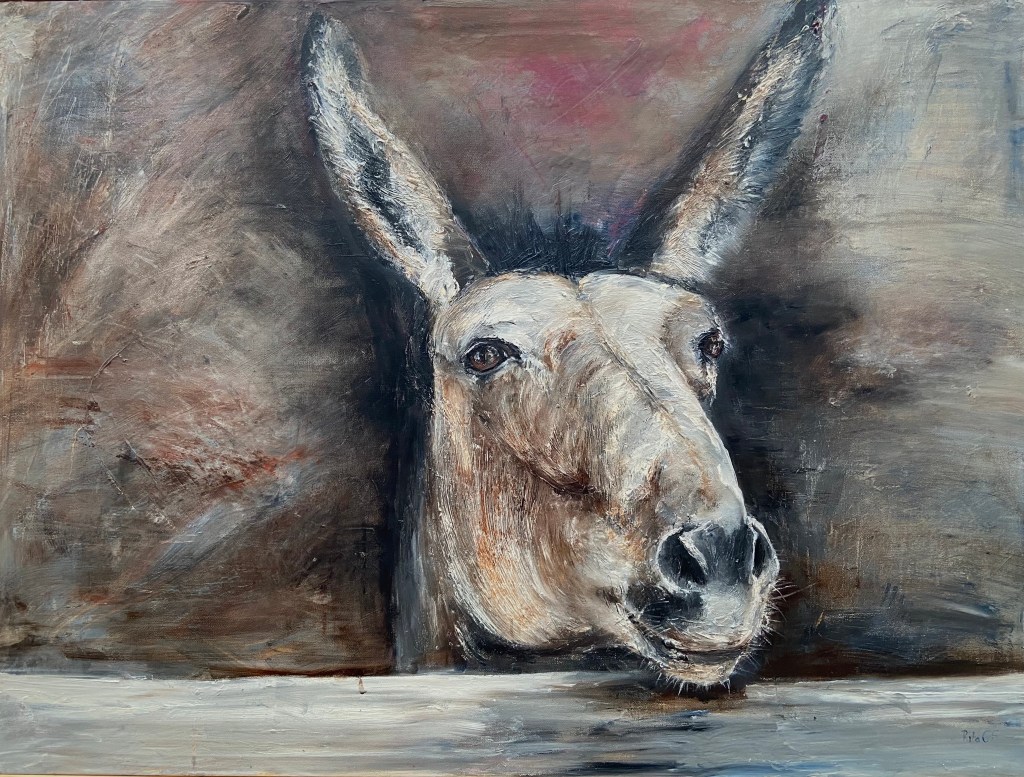 Just love the inquisitive expression on this character. With travel restricted and more time to explore my own practice, I took out my oil paints again. I’m very happy with the more expressive nature of the medium, especially as I would say this is a finger painting, having ditched the brushes and limiting them to the finer hair strokes and bits around the eyes. Oil on canvas. 75 x 110cm