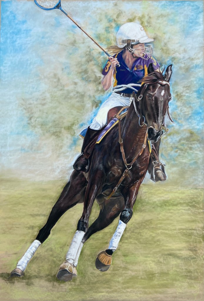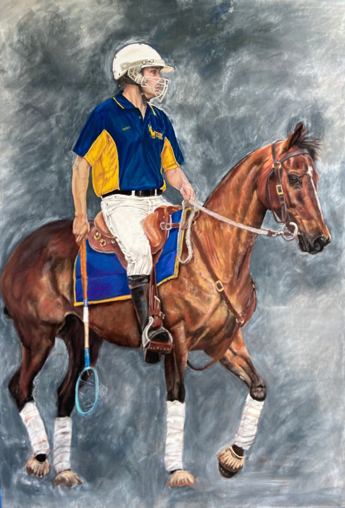 These are the latest portraits I’ve was commissioned to draw of a brother and sister duo. This is a pastel drawing on pastel mat. It is 70cm x 100cm. The brief was to show Turps’ strength and dynamic movement while. I think I captured that. And Chris on Sassy, that relaxed but alert and ready to go feeling was what I was aiming for. The client is very happy with the artworks.