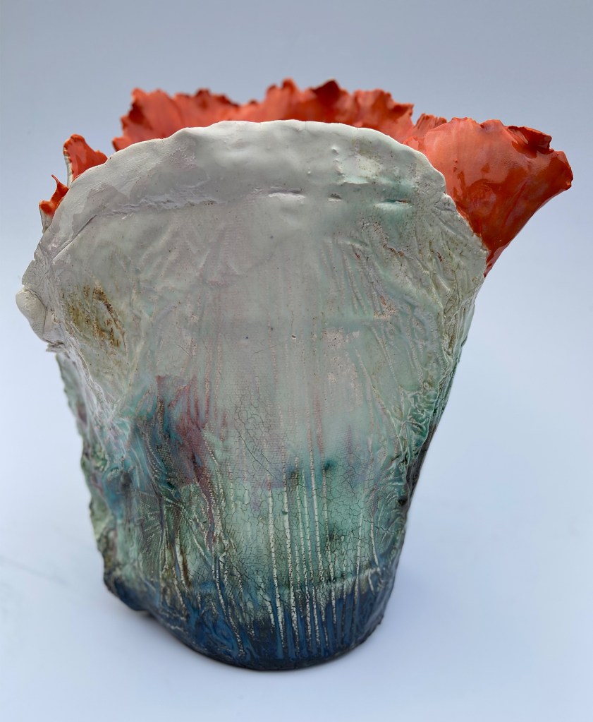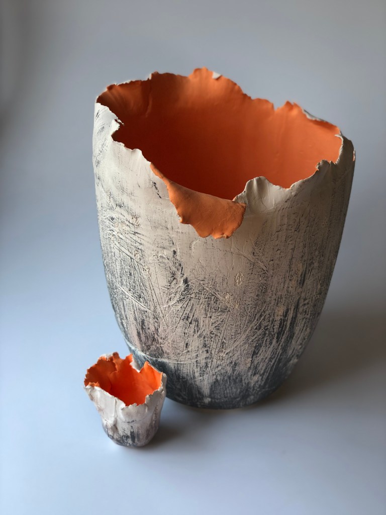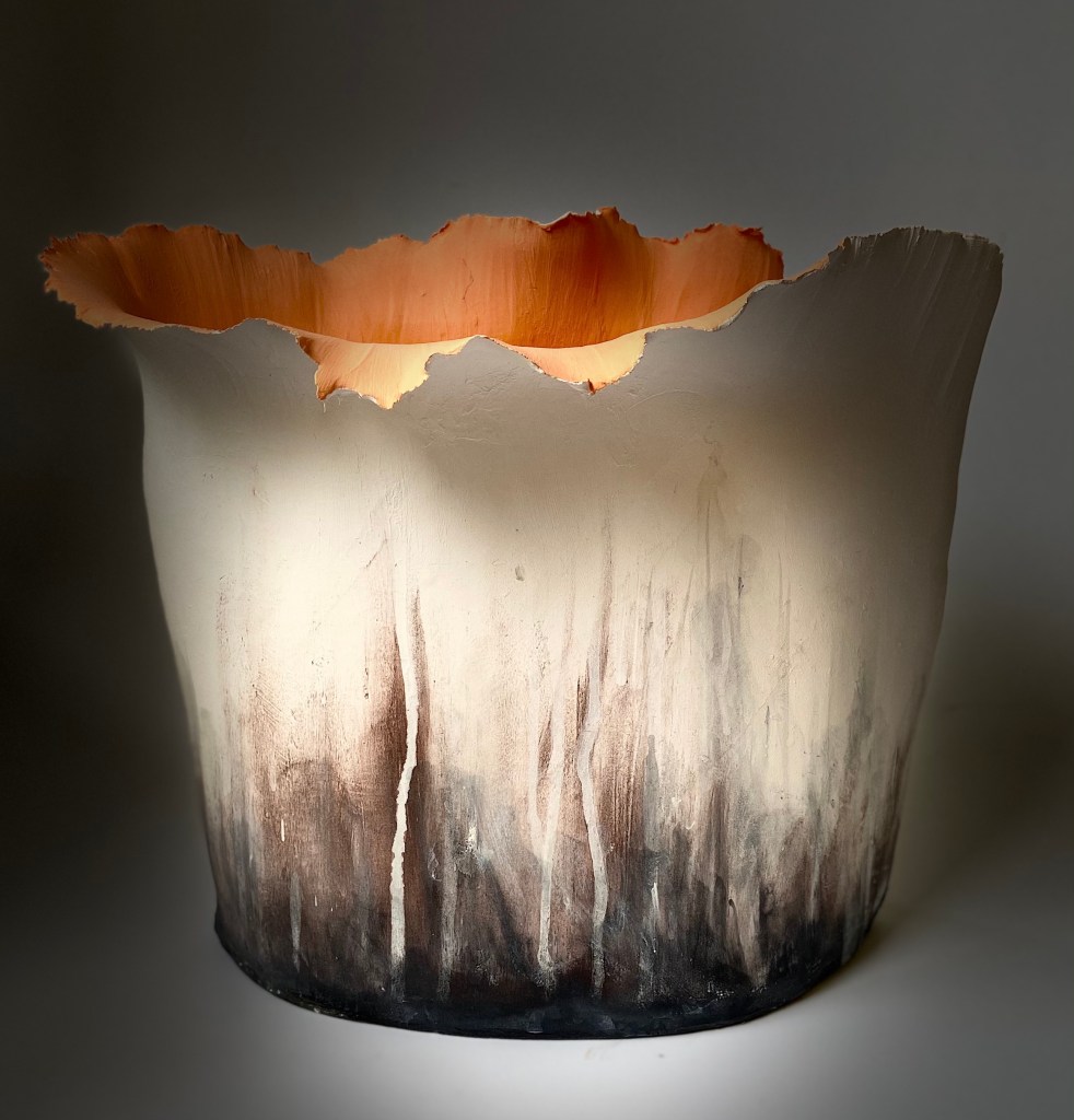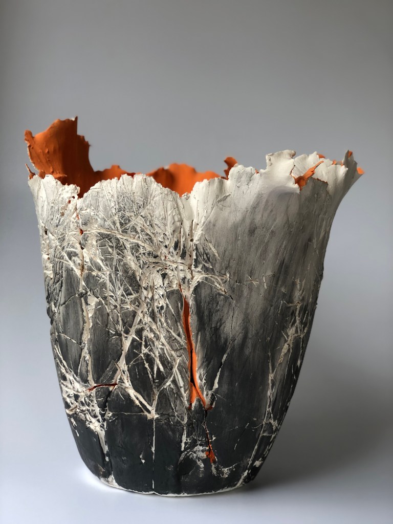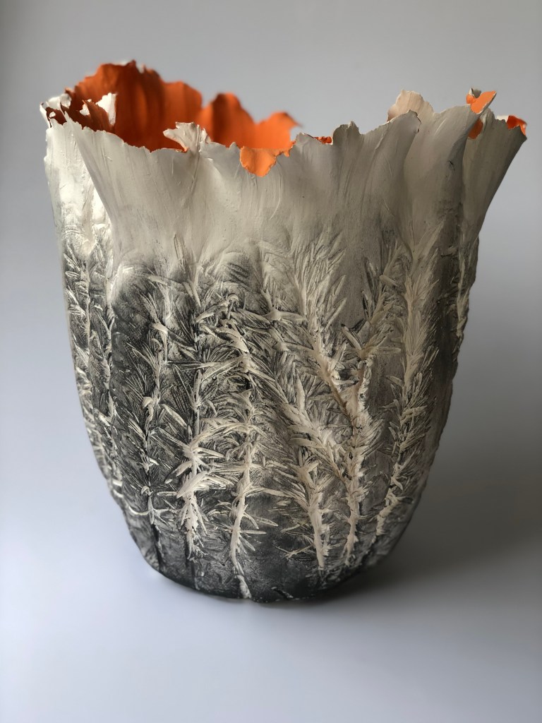 “After the Fires” is a series of hand-built paper porcelain vessels that fall between utilitarian pottery and sculpture. These vessels are a metaphorical response to the 2020 Summer fires that ravaged Australia. Fire both chides and provides, it is mesmerizingly beautiful, yet can be horrifying and destructive. Like porcelain, our inner beauty and strength is revealed once we have been through the fires.